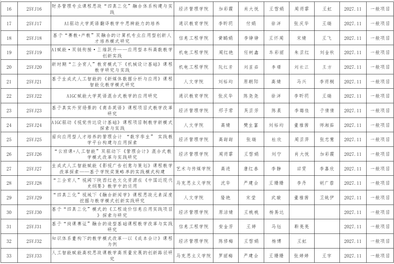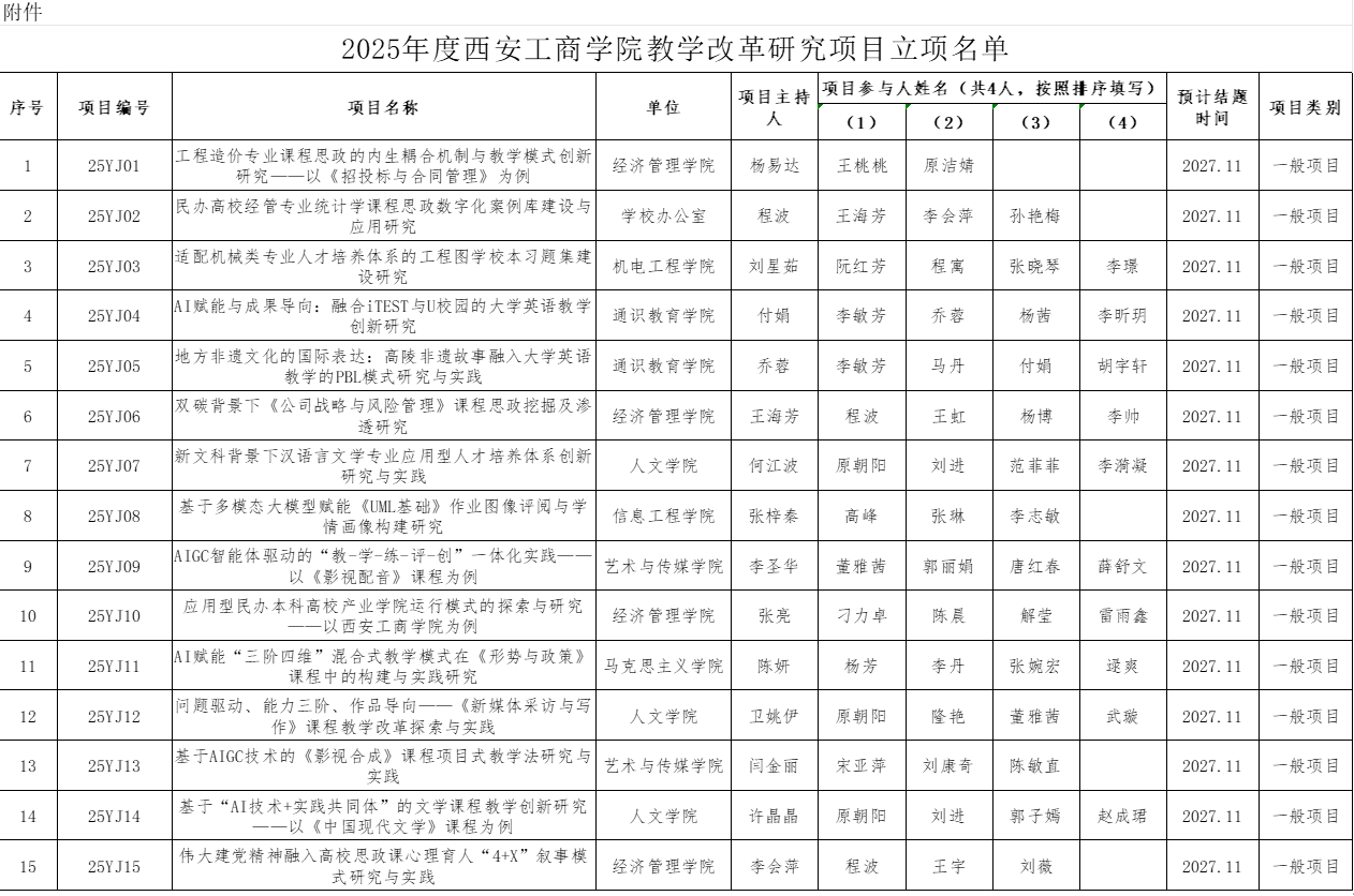 附件:2025年度sunbet集团中国官网入口教学改革研究项目立项名单