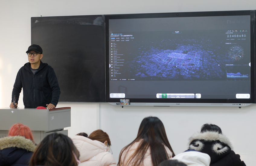 本次讲座特邀西安前景色设计工作室设计总监刘宏恩先生为师生带来了一场主题为“数据可视化的跨学科技术与多领域应用”的精彩分享