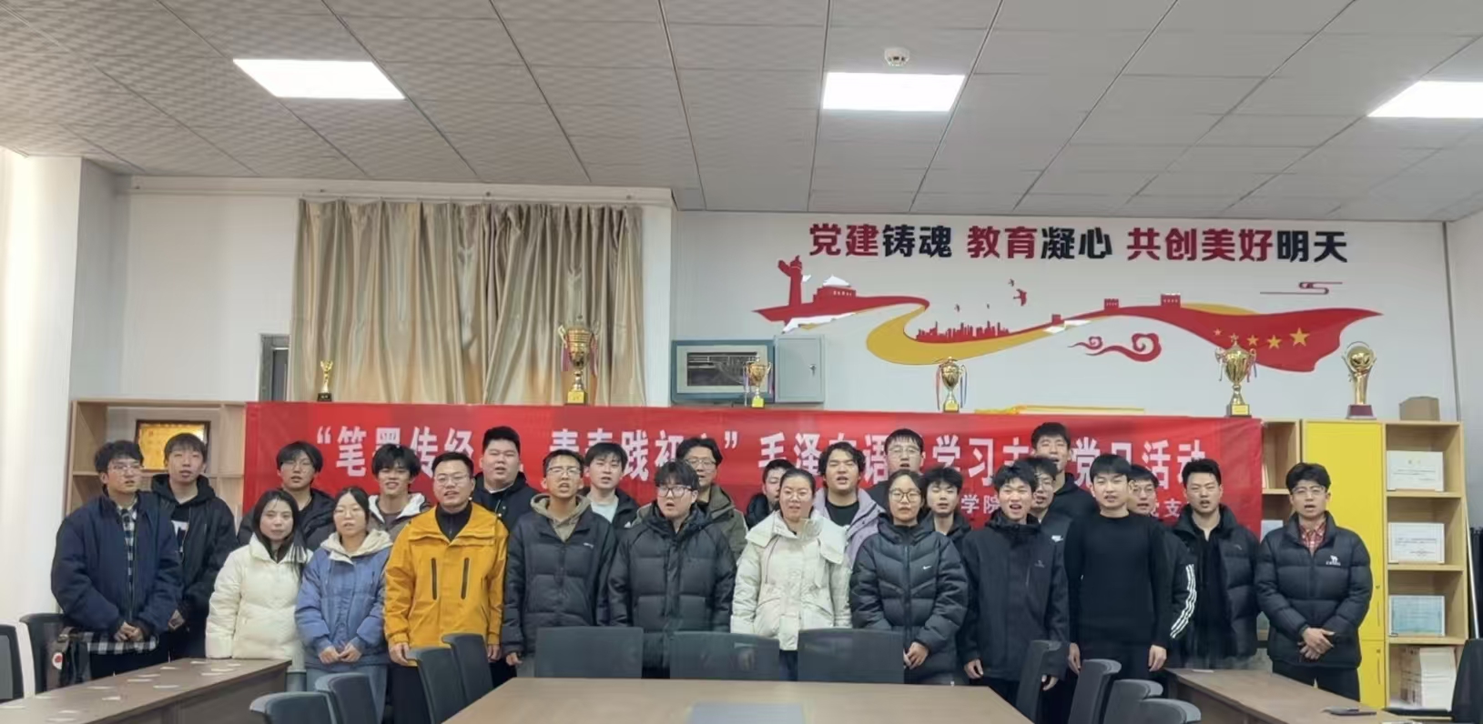 机电工程学院学生第二、四党支部联合主办的“笔墨传经典,青春践初心”毛泽东语录学习主题党日活动在实验楼301顺利举行。