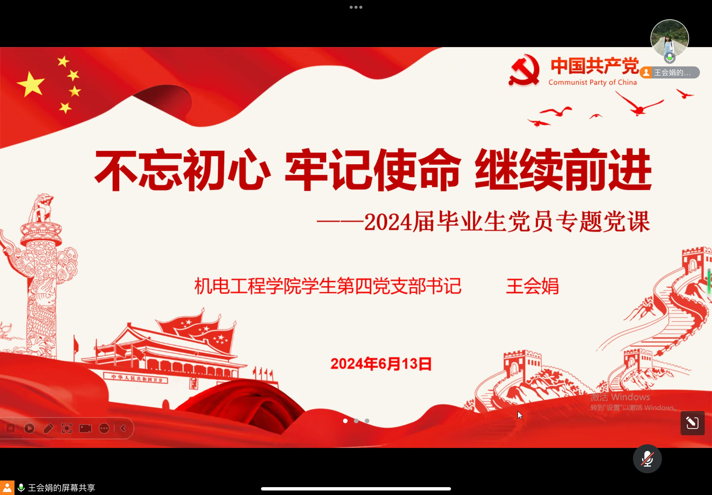 学校党纪学习教育启动以来,机电工程学院党总支召开毕业班党员党纪学习线上会议, 会议由学生第四党支部支部书记王会娟主持。